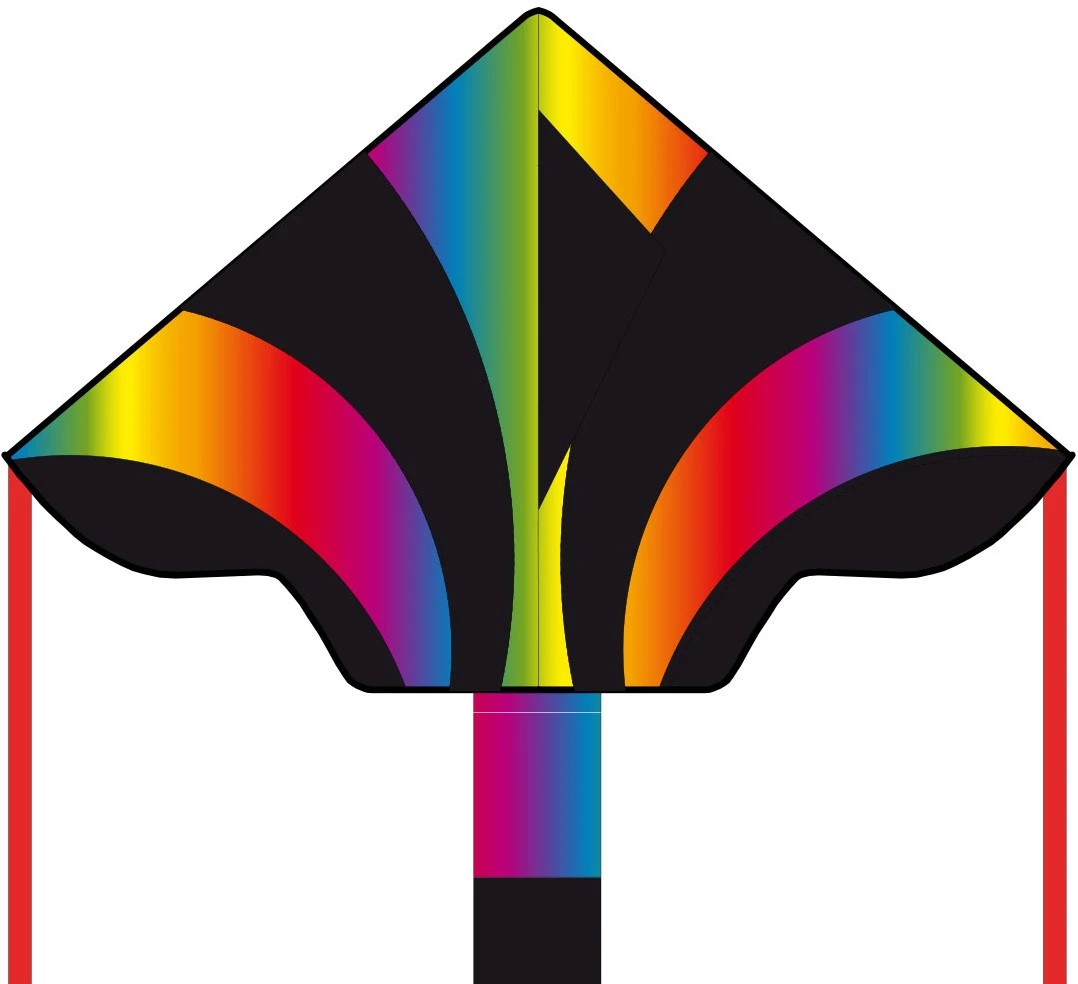 Ecoline 102148 – Simple Flyer Radient Rainbow 120cm Kinderdrachen Einleiner, ab 5 Jahren, 75x120cm und 1.5m Drachenschwanz, inkl. 17kp Polyesterschnur 25m auf Griff, 2-5 Beaufort