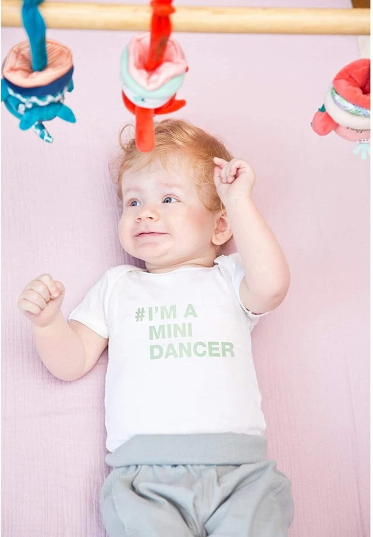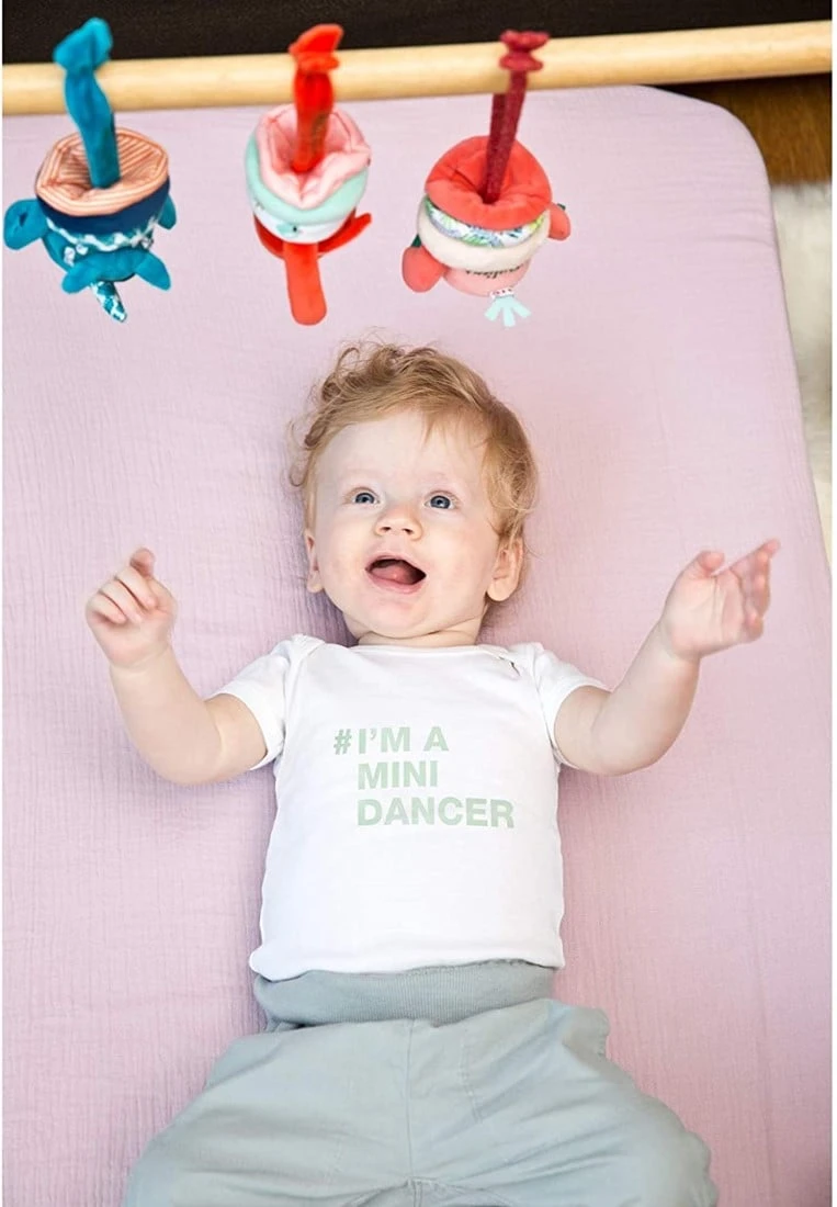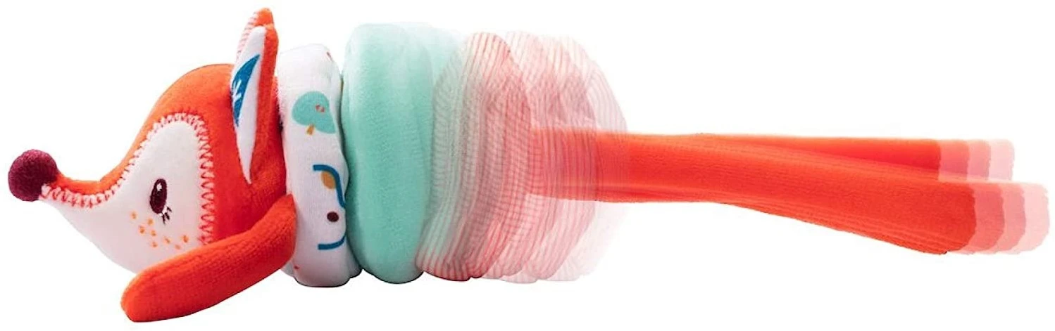Zieht man an den Beinen, beginnt diese Rassel fröhlich zu tanzen. Was für ein lustiges, überraschendes Gefühl für kleine Hände!