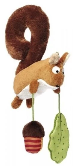 Spiel und Spaß für unterwegs. Das lustige Eichhörnchen wird einfach mit dem Ringelschwänzchen um den Bügel der Babyschale befestigt und schaut dann liebevoll zum Kind hinunter. Mit an Board hat es ein Knisterblatt und eine Rassel, um den kleinen Mitfahrer zu unterhalten. Ein schönes Spielzeug, mit dem es bei der Autofahrt nie langweilig wird.