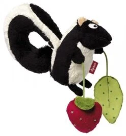 Spiel und Spaß für unterwegs. Das witzige Stinktier wird einfach mit dem Ringelschwänzchen um den Bügel der Babyschale befestigt und schaut dann liebevoll zum Kind hinunter. Mit an Board hat es ein Knisterblatt und eine Rassel, um den kleinen Mitfahrer zu unterhalten.