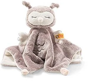 Ollie Eule Schmusetuch aus der Familie Soft Cuddly Friends aus rosébraunem und cremefarbenem Plüsch für babysanfte Haut ist ein unverzichtbarer Begleiter in den ersten Lebensmonaten des Neuankömmlings auf dieser Welt. Es findet überall sein Plätzchen, egal ob im Babybettchen oder im Kinderwagen. Es hat ein niedliches, cremefarbenes Gesichtchen mit geschlossenen, gestickten Augen in glänzendem Grau. Die zarten Farben wirken besonders beruhigend auf das Baby. Die Innenflügel von Ollie Eule, der Innenteil des Tuchs und der Bauch sind ebenfalls in Creme gehalten. Den Vorderteil des Kuscheltuches ziert eine goldene Bestickung. Die angedeuteten Füße und die Nase sind rosafarben. Sie ist 26 cm groß und ideal zum Kuscheln. Mit diesem tollen Schmusetuch lernt ein Baby spielend das Greifen und Festhalten.